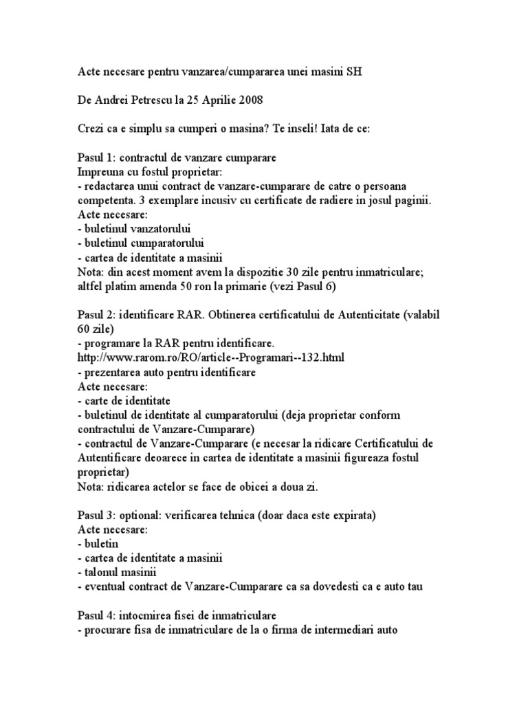 Acte Necesare Pentru Vanzarea Unei Masini Viaţa Liberă Galaţi