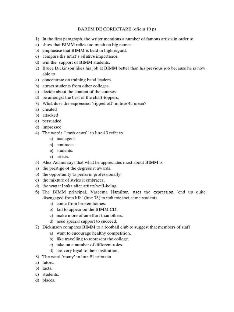 Barem De Corectare Ex Corigenta Cls A Vi A Doc
