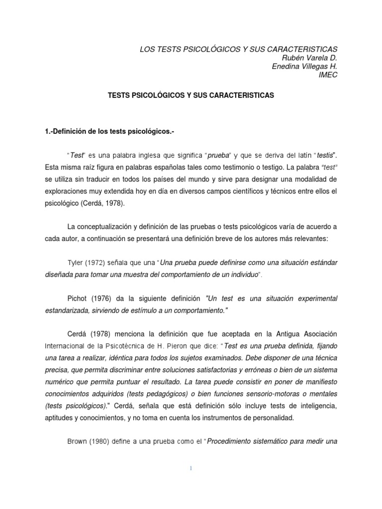 Caracteristicas De Los Test