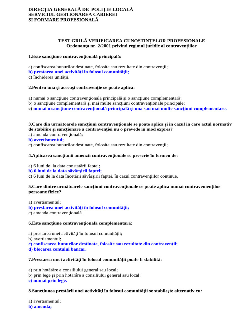 Test Grilă Verificarea Cunoștințelor Profesionale Ordonanţa Nr 2