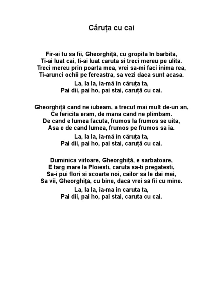 Caruta cu cai versuri. Prin clic pe butonul inregistreaza te accept termenii de utilizare. Nu i caruta ca mertanul doar cu ea imi castig banul e. Doar cu ea imi castig banul e descurcaret tiganul nu face tigania cat face caruta mea. Olx online services s r l.