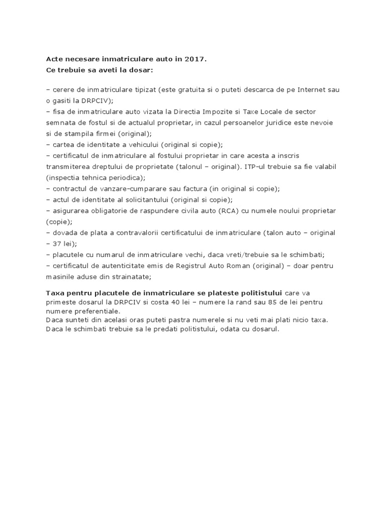 Actele Necesare Pentru Inmatricularea Auto In 2019 Modificari