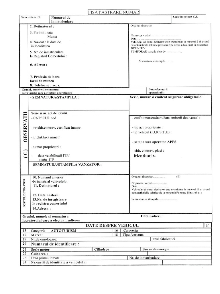 Fisa Pastrare Numere De Inmatriculare
