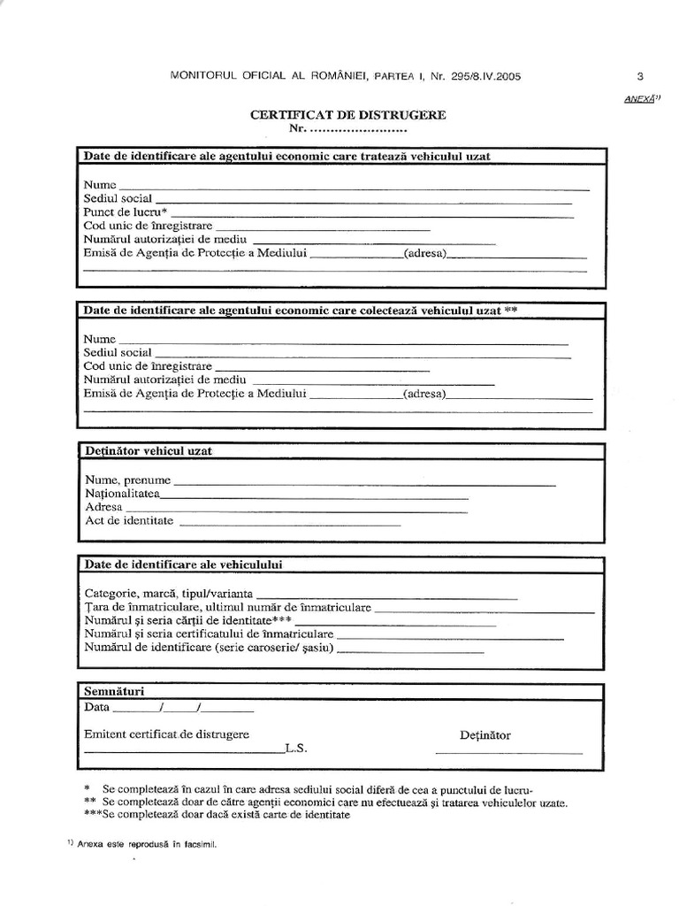 Certificat De Distrugere Auto 2019