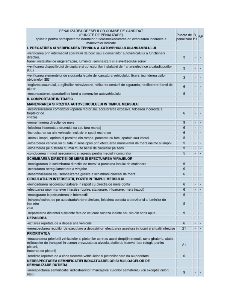 Fisa Puncte Penalizare Examen Auto