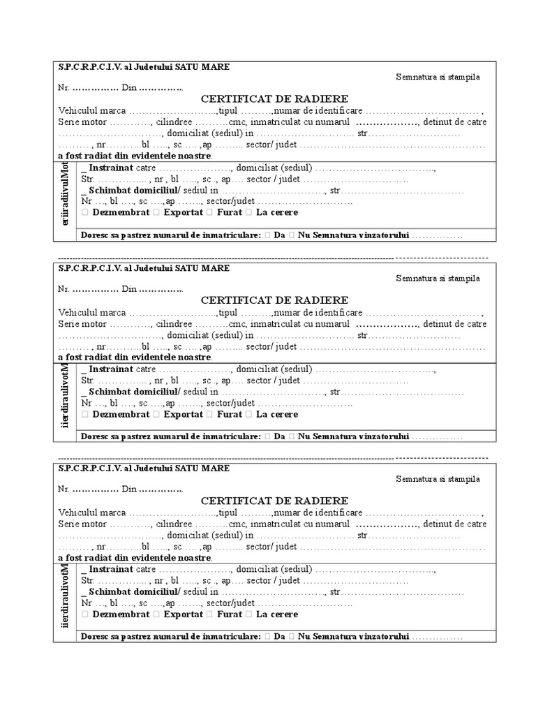 Certificat De Radiere Auto Formular Word Formulare Tipizate Gratuite