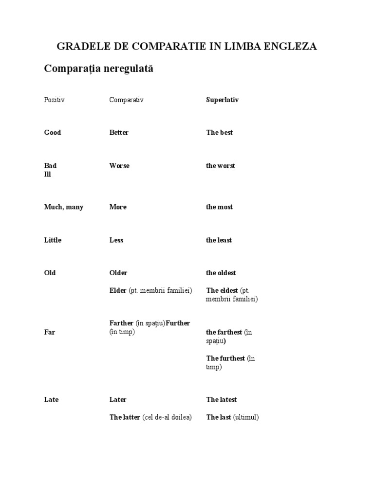 Adjectivele Comparative In Engleza Romana