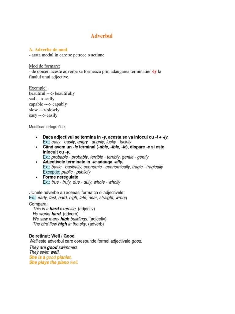 Referat Adverbul Clasificarea Adverbului Gradele De Comparatie Locutiuni Adverbiale 341594 Graduo