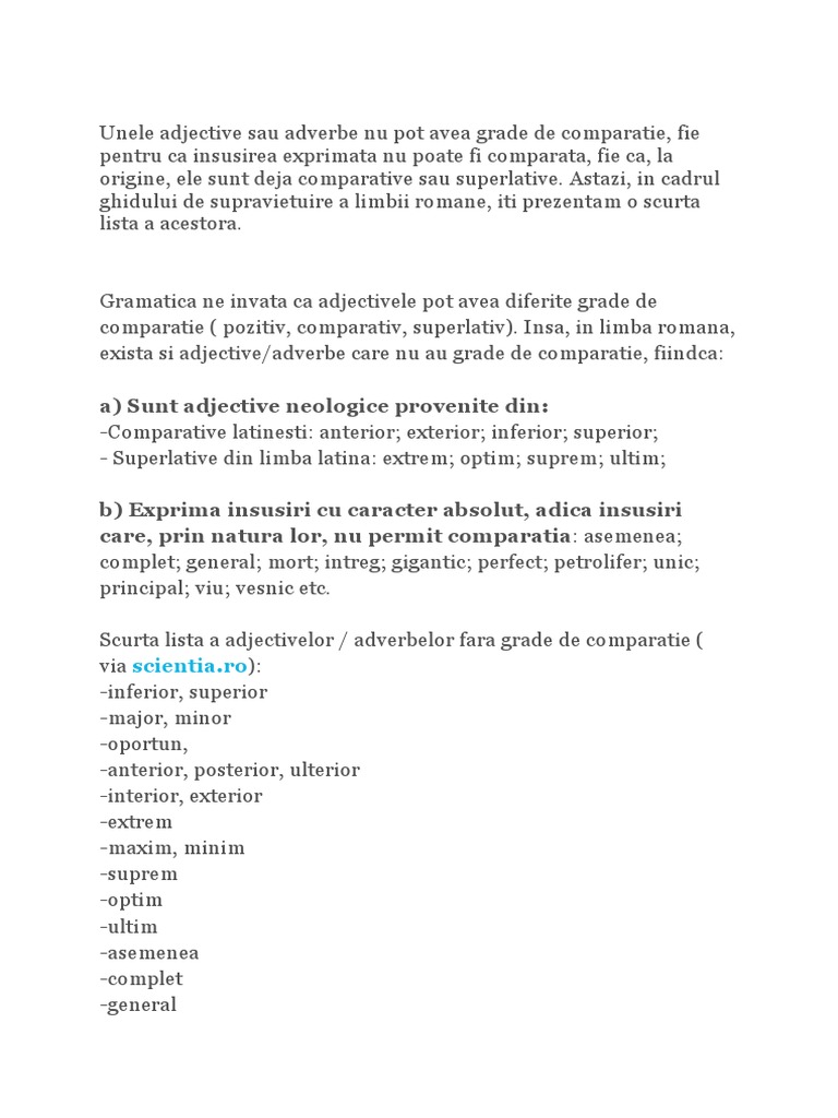 Unele Adjective Sau Adverbe Nu Pot Avea Grade De Comparatie