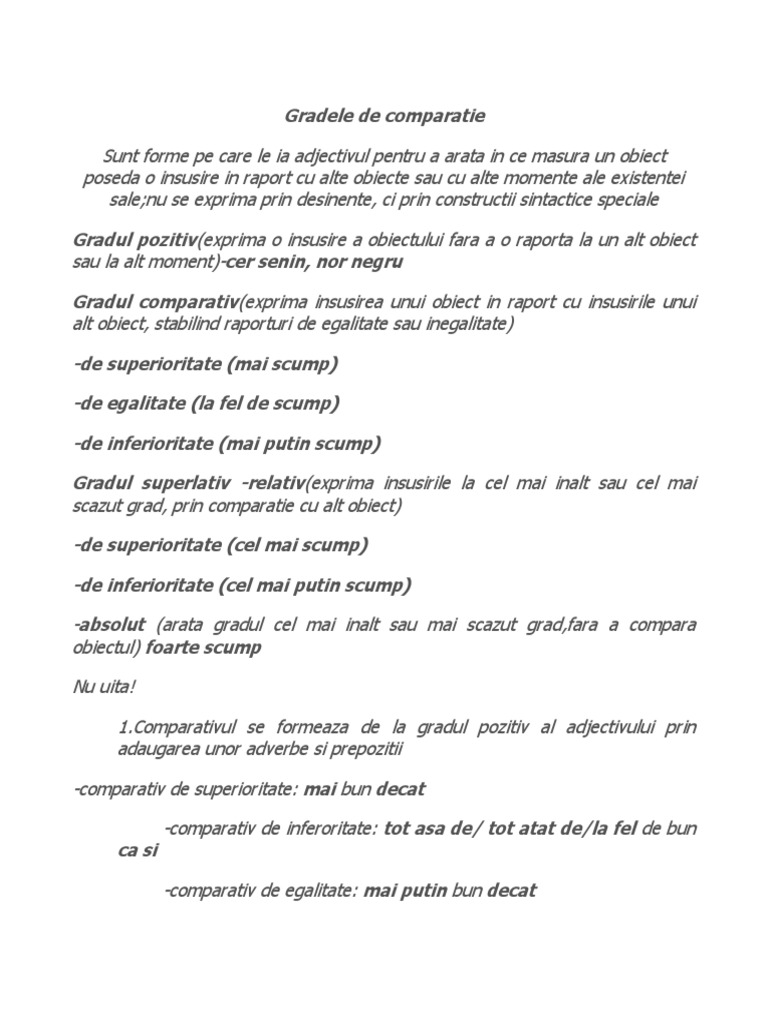 Gradele De Comparatie Ale Adjectivelor Limba Romana Pentru