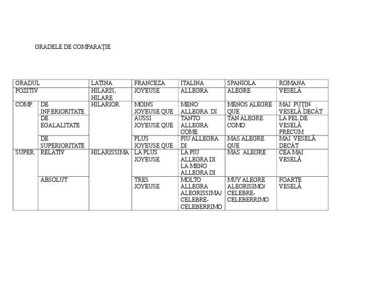 Gradele De Comparaţie Limbile Romanice
